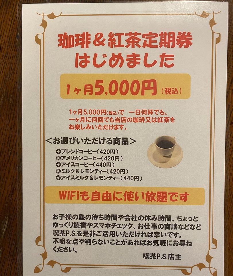 30数年間、タバコが吸える喫茶店から2月1日(土)には【全席禁煙の喫茶店】に生まれ変わる喫茶P.S.さん。