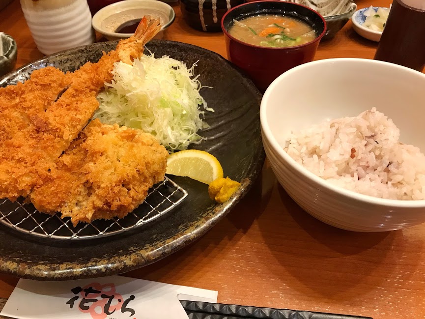 何よりも柔らかいヒレカツ、ガッツリなロースカツ、プリップリのエビフライをいろいろ味わえて最高に美味しい定食でした。お腹パンパン。