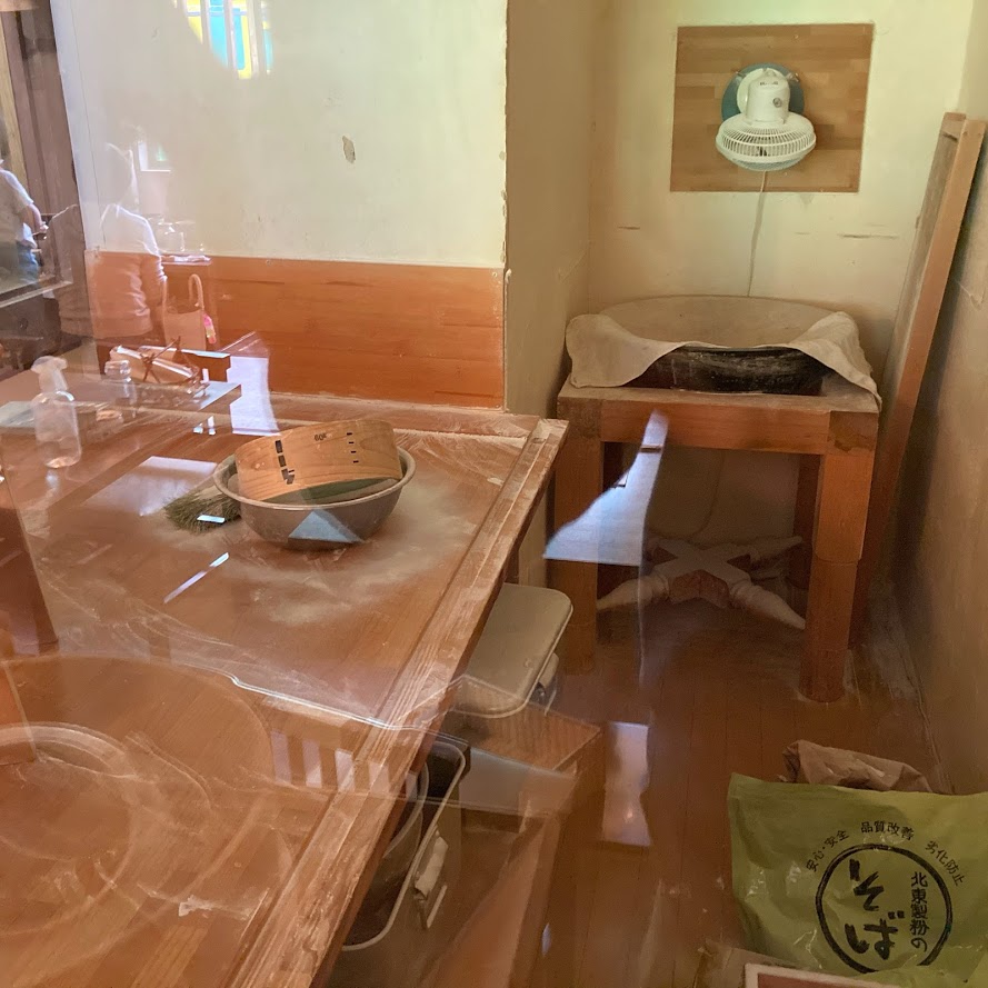 すると、なんと蕎麦を打つ部屋が2Fにある。さらに中はまる見え。