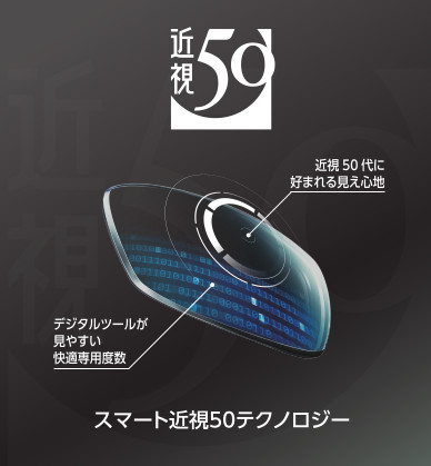 【近視50(フィフティ)】というネーミングセンスが疑われかねないギリギリのところをつく「50歳前後の近視の目の人たちに好まれる大人レンズ」の登場です。