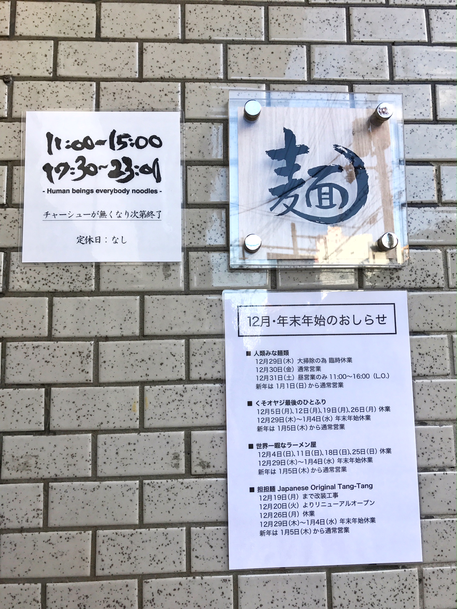 最後尾に行って『すいませんがこちらのらーめん屋さんの名前は何というんでしょうか!?』と並んでる男性に聞くと『人類みな麺類ですよ!』