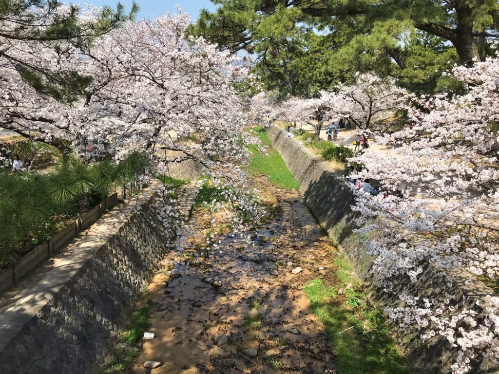 平日なのに夙川駅から苦楽園駅の間の河川敷はたくさんのお花見客(゚∀゚)