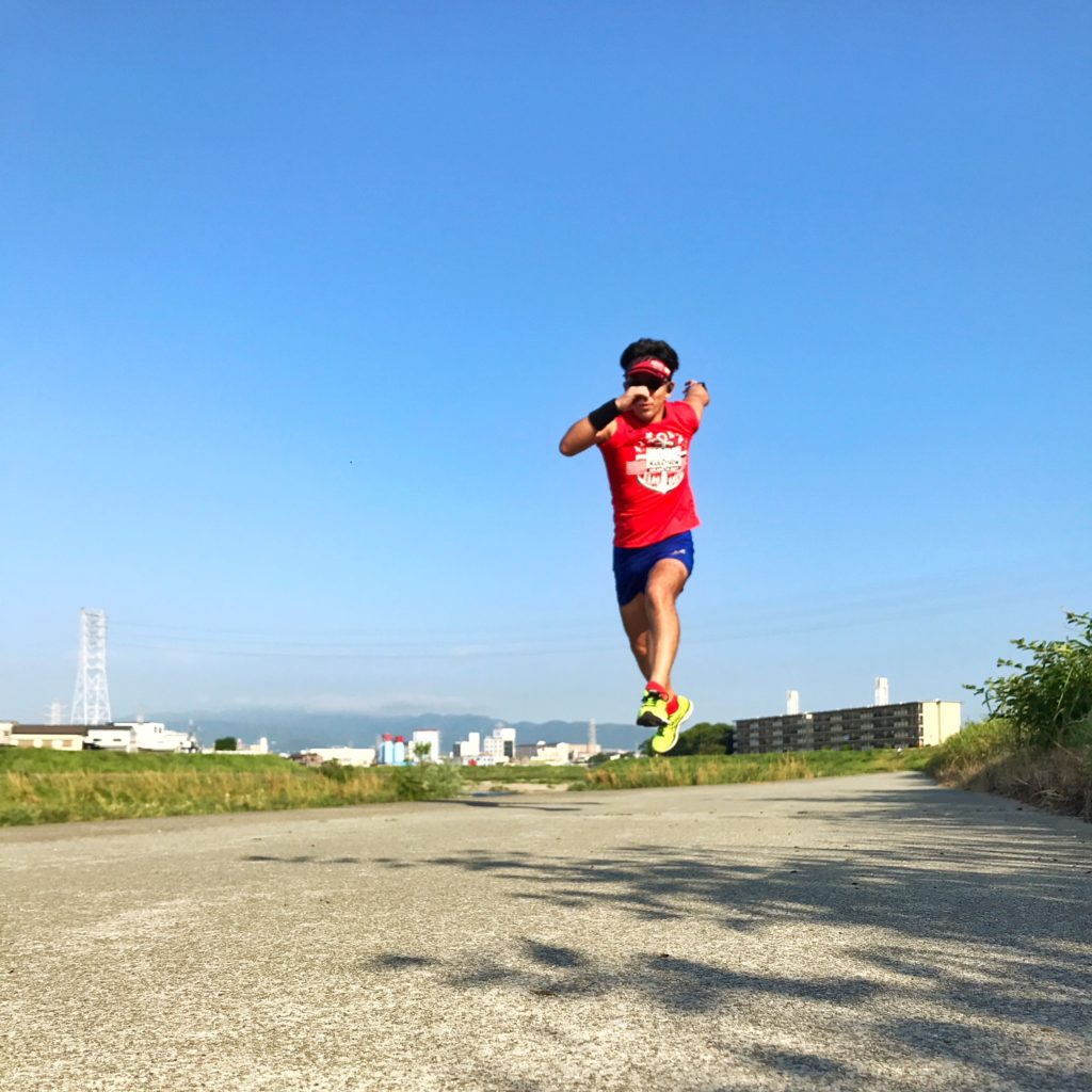 藻川河川敷を走ってたんですが暑いけど、快晴が気持ち良すぎてホップステップジャンプして遊んでみました(≧▽≦)