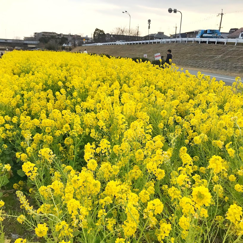 武庫川の河川敷には菜の花が咲き乱れていて、思わず惹き寄せられました(●´ω`●)